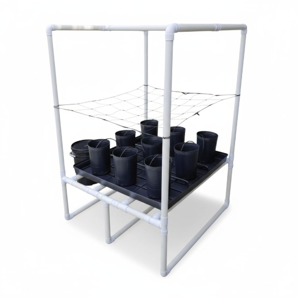 La Mesa de Cultivo con Riego Automático es un sistema versátil y ordenado para macetas con sustratos aireados. Su bandeja de drenaje, estructura con red y riego automático garantizan una distribución uniforme de agua y nutrientes, logrando cultivos más sanos y eficientes en un área de 1 × 1 m.